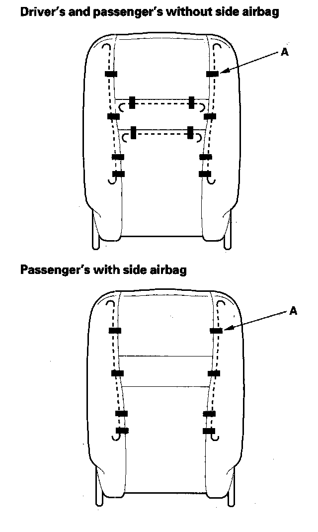 - With side airbag: Do not repair any tears or frayed spots of the seat-back cover. If necessary, replace the seat-back cover.