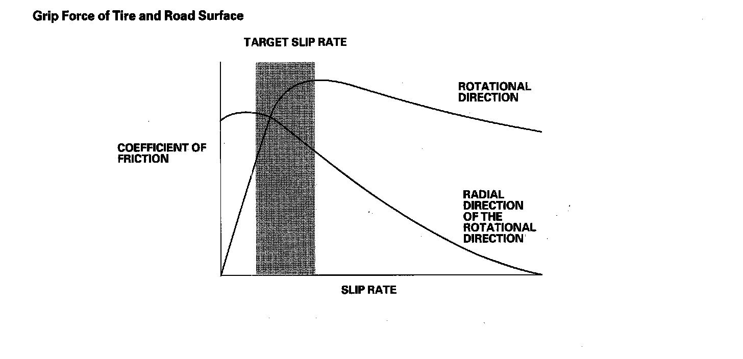 When the brake pedal is pressed during driving, the wheels can lock before the vehicle comes to a stop. In such an event, the maneuverability of the vehicle is reduced if the front wheels are locked, and the stability of the vehicle is reduced if the rear wheels are locked, creating an extremely, unstable condition. The ABS precisely controls the slip rate of the wheel is to ensure maximum grip force from the tires, thereby ensuring the maneuverability and stability of the vehicle.