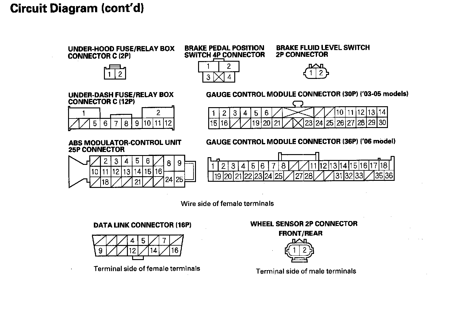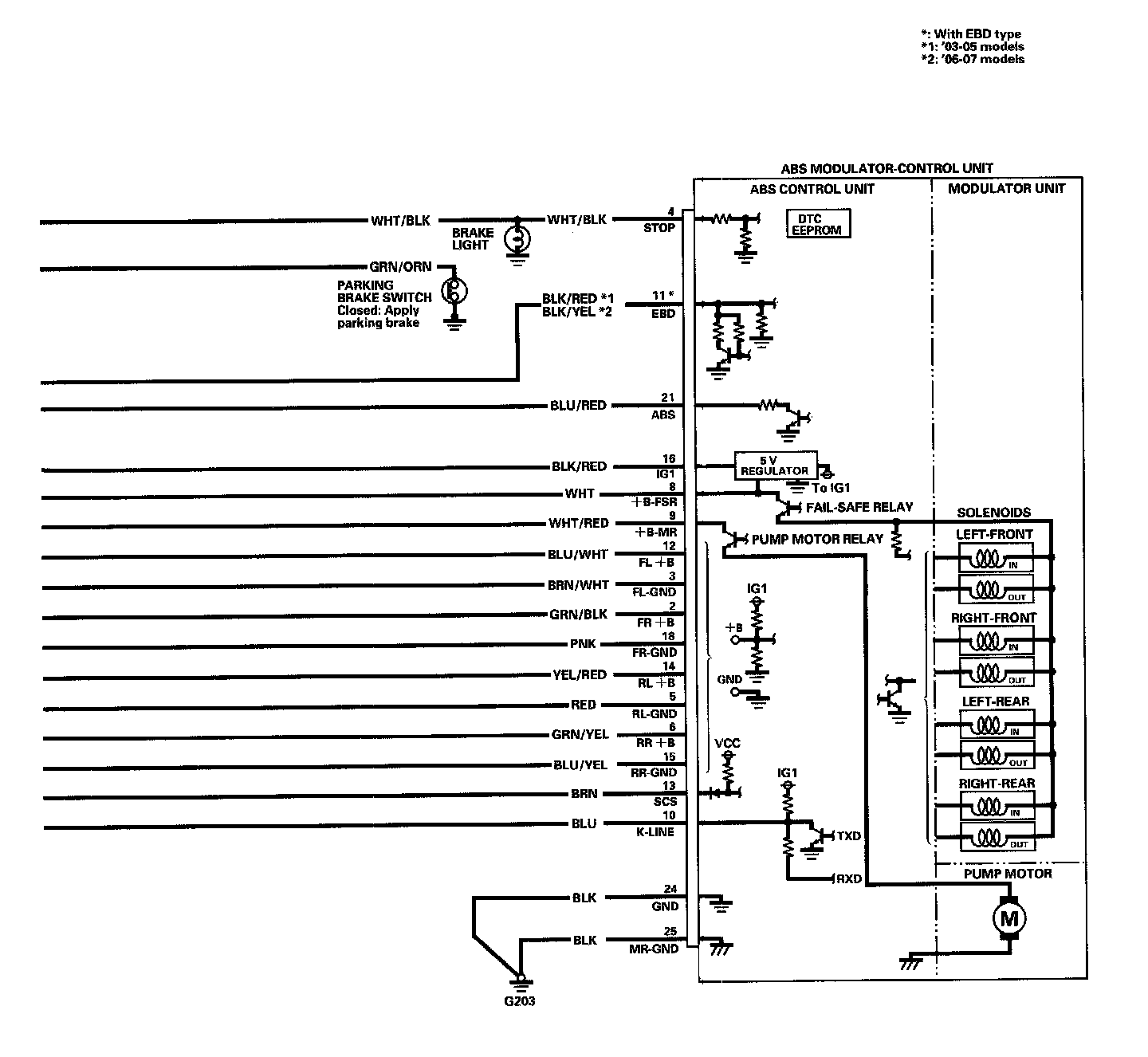 ABS Modulator-Control Unit Inputs And Outputs For 25P Connector: