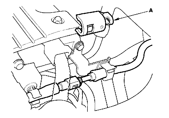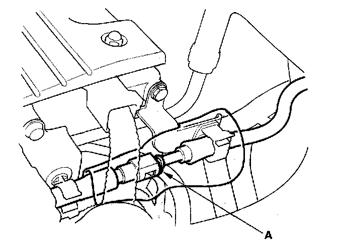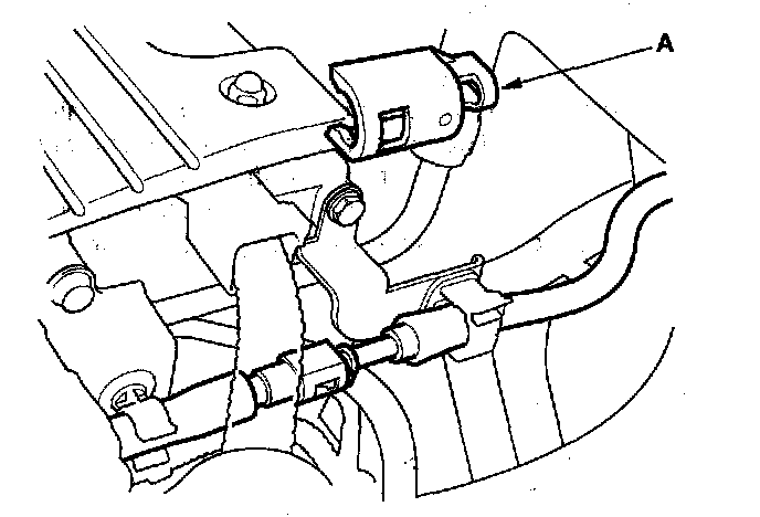 2. Remove the left kick panel; 2-door, 4-door, then remove PGM-FI main relay 2 (FUEL PUMP) (A) from the under-dash fuse/relay box.