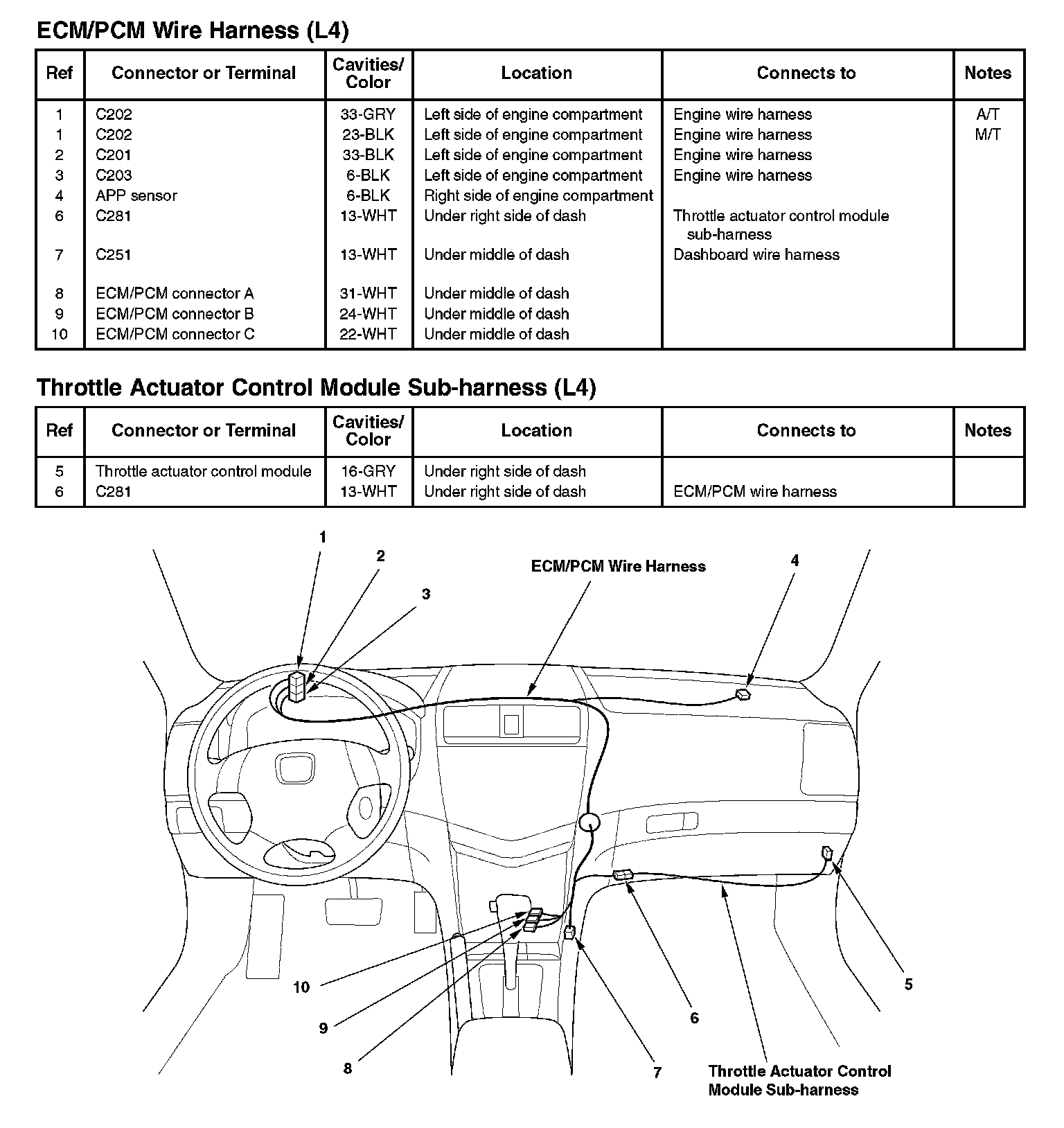 ECM/PCM Wire Harness (L4)/Throttle Actuator Control Module Sub-harness (L4):