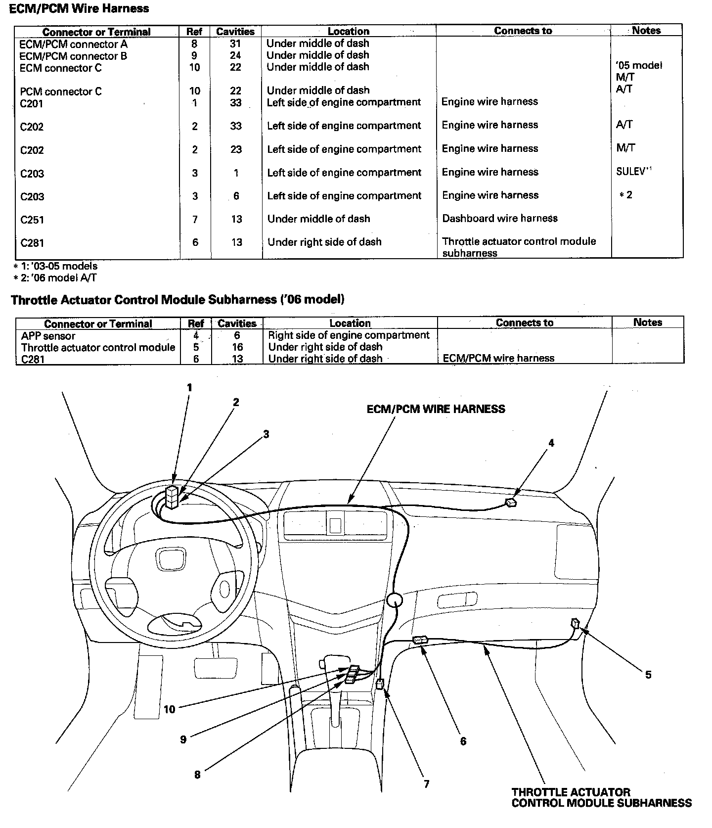 ECM/PCM Wire Harness/Throttle Actuator Control Module Subharness:
