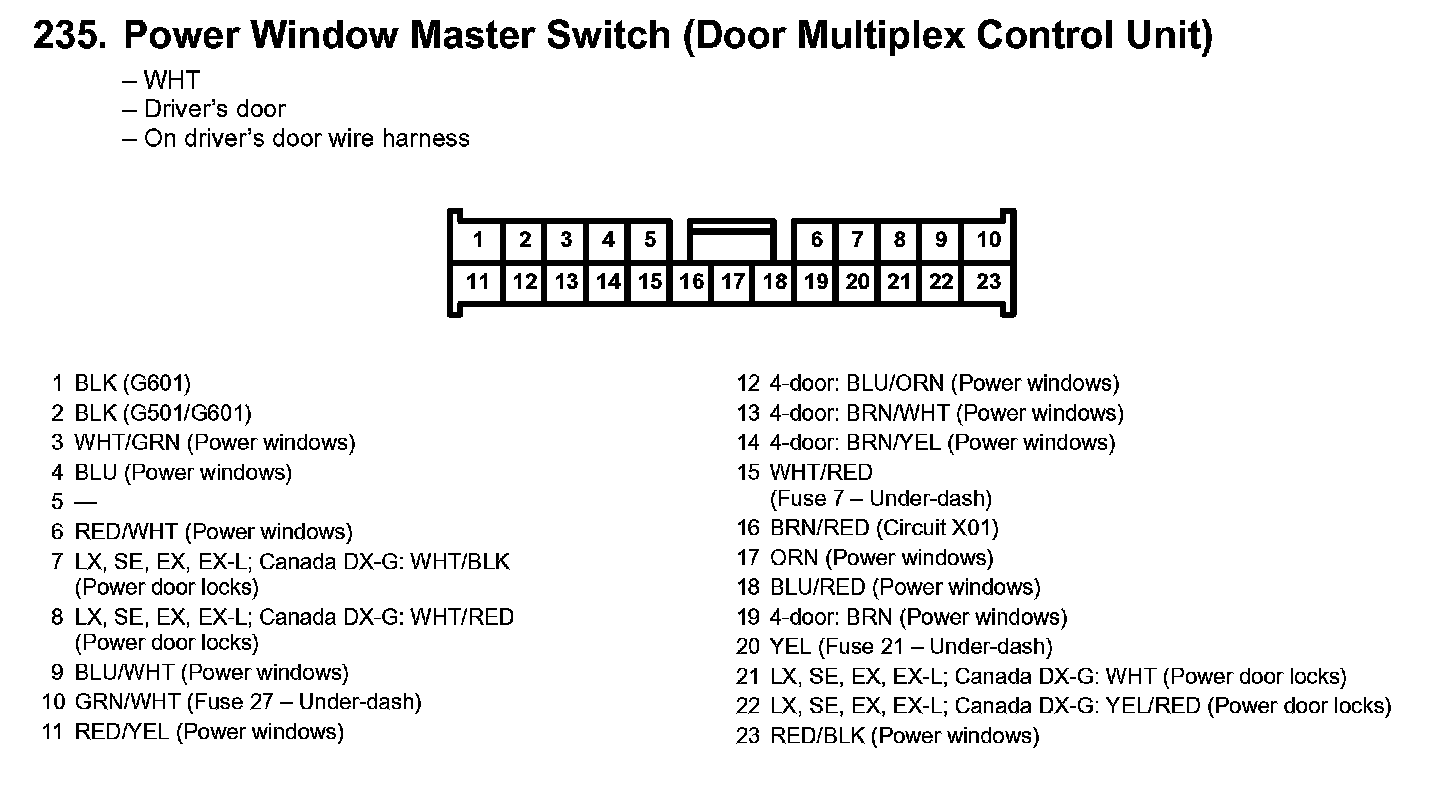 235. Power Window Master Switch (Door Multiplex Control Unit):