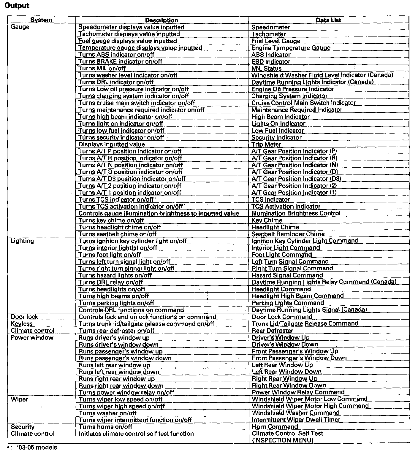 HDS Inputs And Commands - Output: