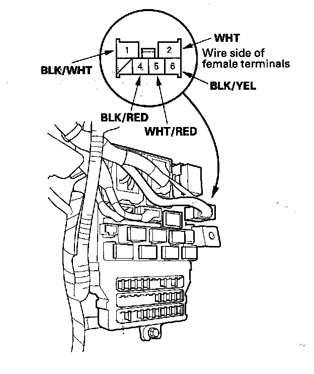 5. Disconnect the 6P connector from the driver's under-dash fuse/relay box.