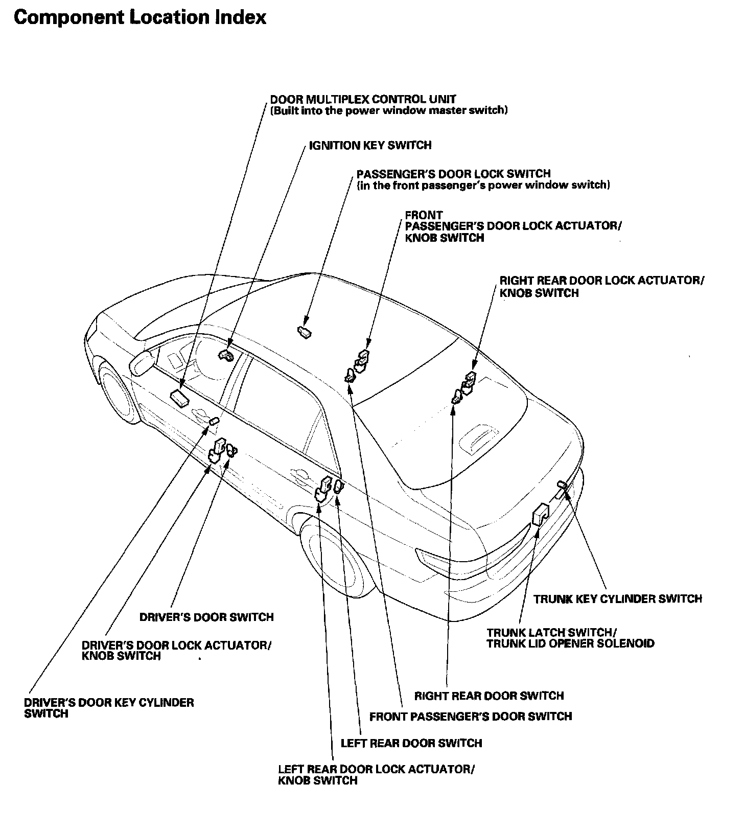 Keyless/Power Door Locks/Security System - Component Location Index:
