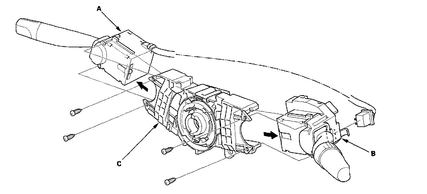 4. Replace the combination switch body complete (C).