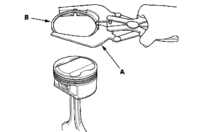 5. Measure the piston ring end-gap (B) with a feeler gauge: