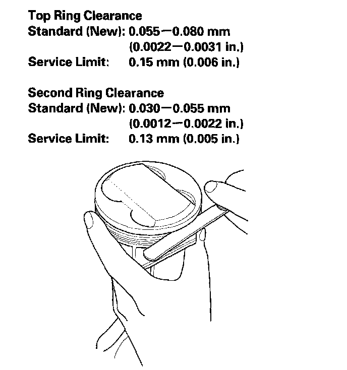 7. After installing a new set of rings, measure the ring-to-groove clearance:
