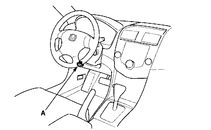 2. Connect the HDS or the Honda Interface Module (HIM) to the data link connector (DLC) (A) located under the driver's side of dashboard.