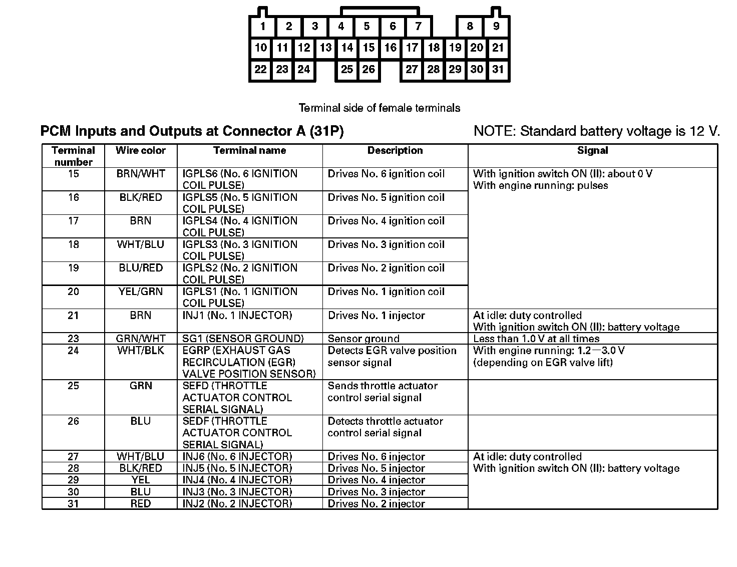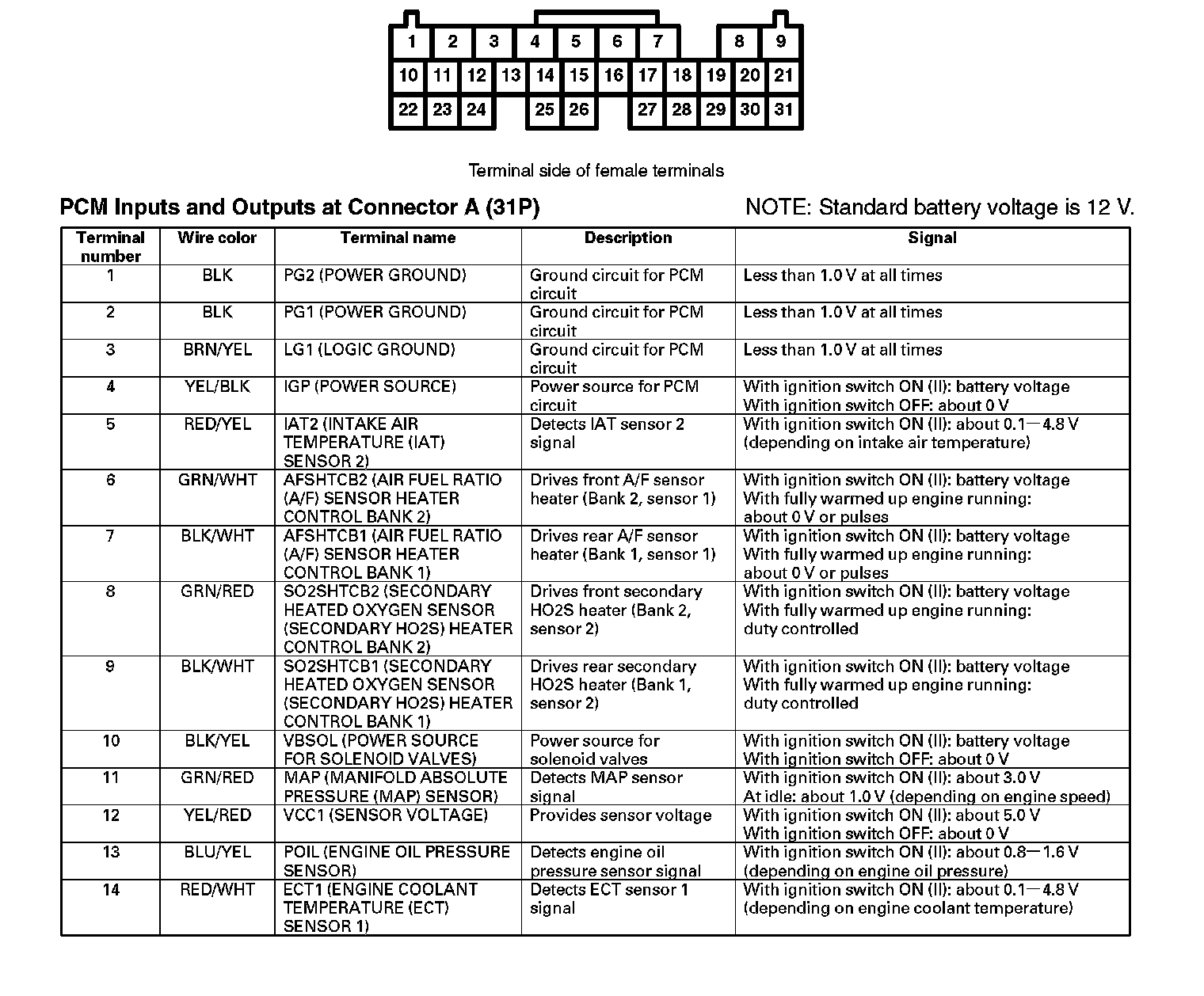 PCM Inputs And Outputs At Connector A (31P) Part 1: