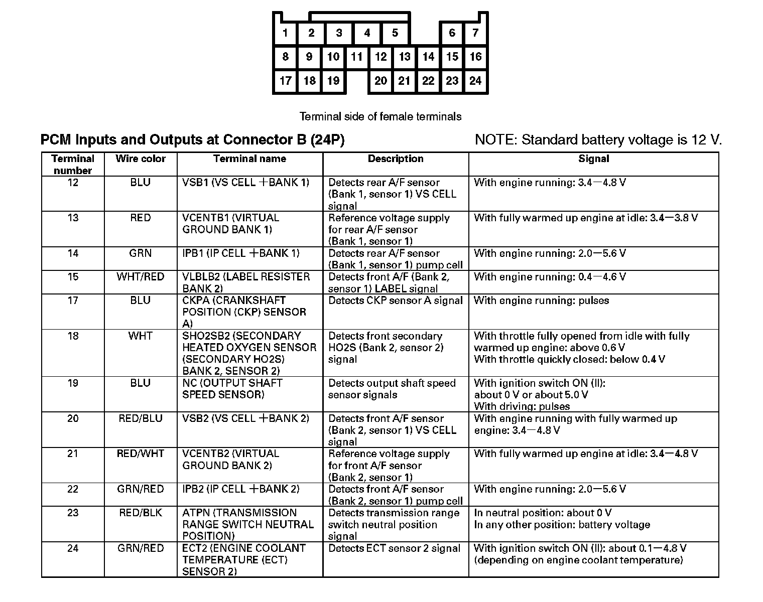 PCM Inputs And Outputs At Connector B (24P) Part 1: