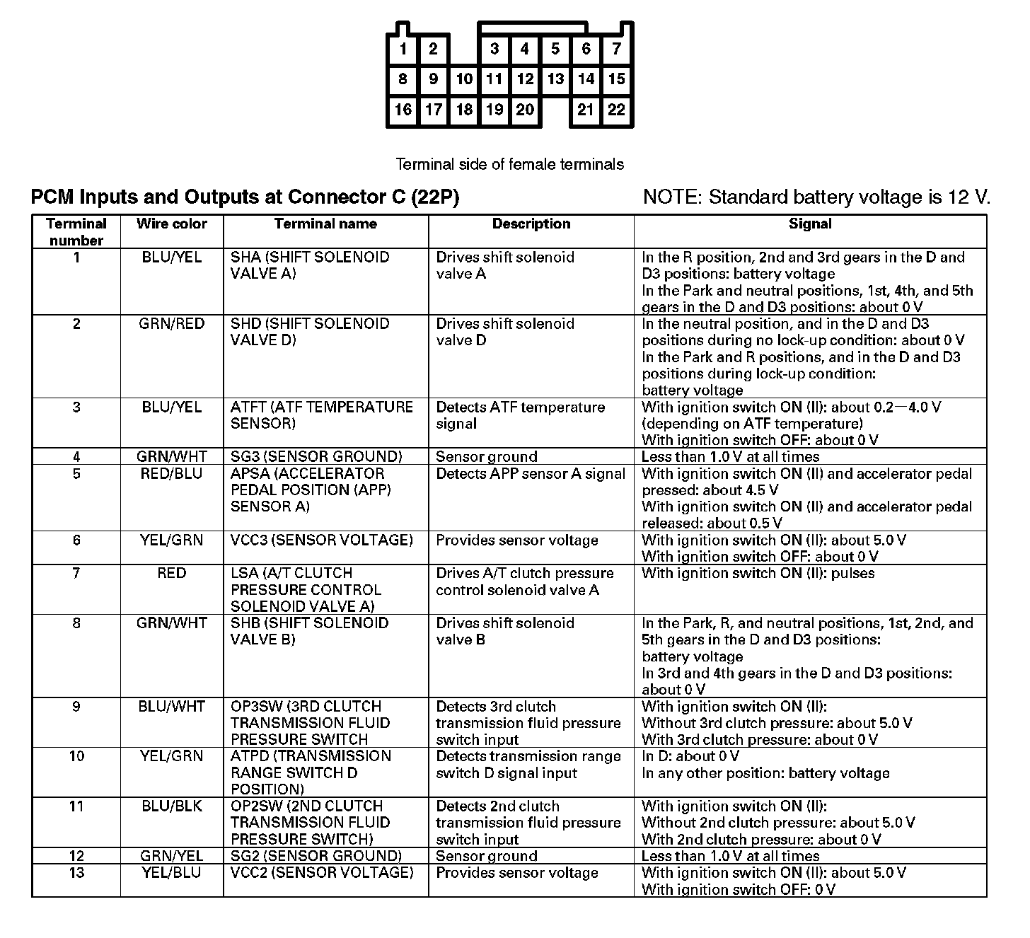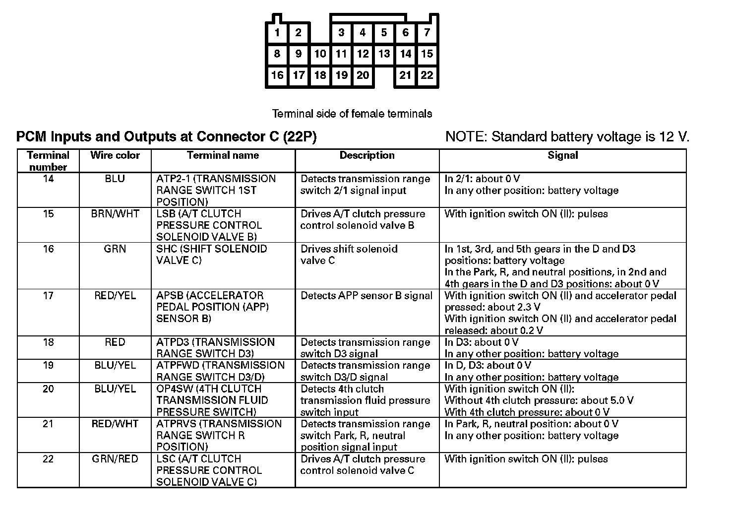 PCM Inputs And Outputs At Connector C (22P) Part 1: