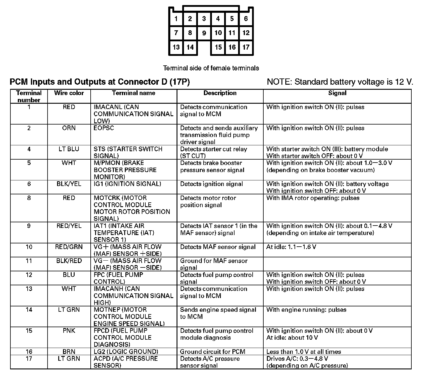 PCM Inputs And Outputs At Connector D (17P):