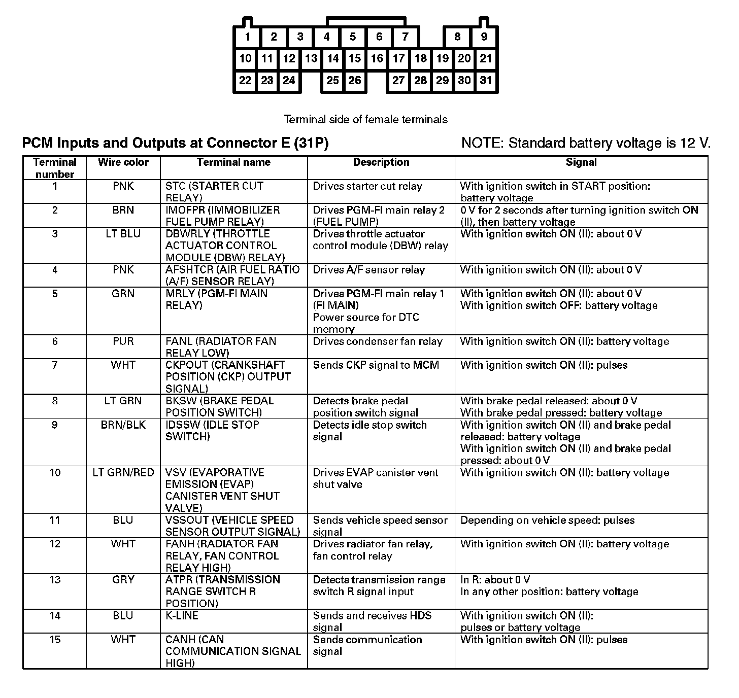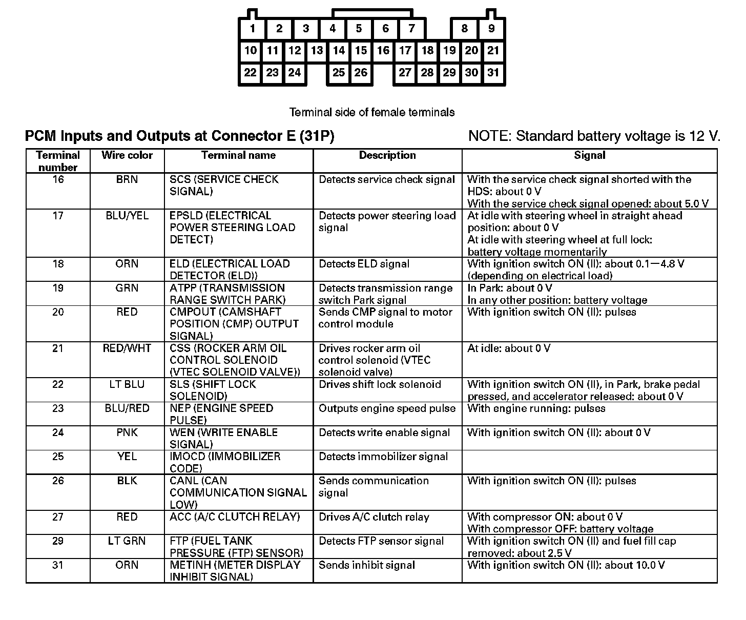PCM Inputs And Outputs At Connector E (31P) Part 1: