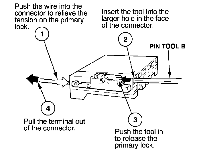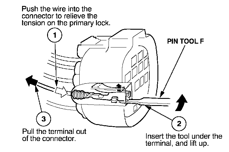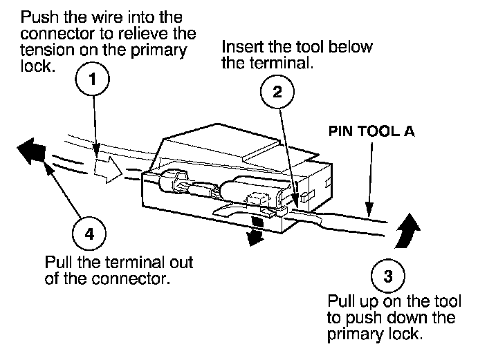 Before you begin, inspect the wire you are about to repair for damage and length. Make sure the wire will be long enough to make a terminal repair without stretching it when you reinstall the terminal in the connector. If the wire is too short, or if access to the connector is too restricted to make a terminal repair, you may need to install a pigtail terminal (a short length of wire with a factory-crimped terminal on it). Refer to HOW TO INSTALL PIGTAIL TERMINALS.
