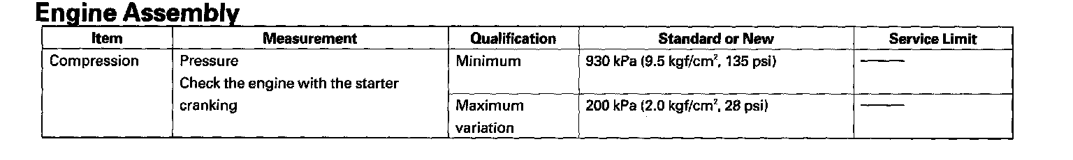 Engine Assembly - Standards And Service Limits: