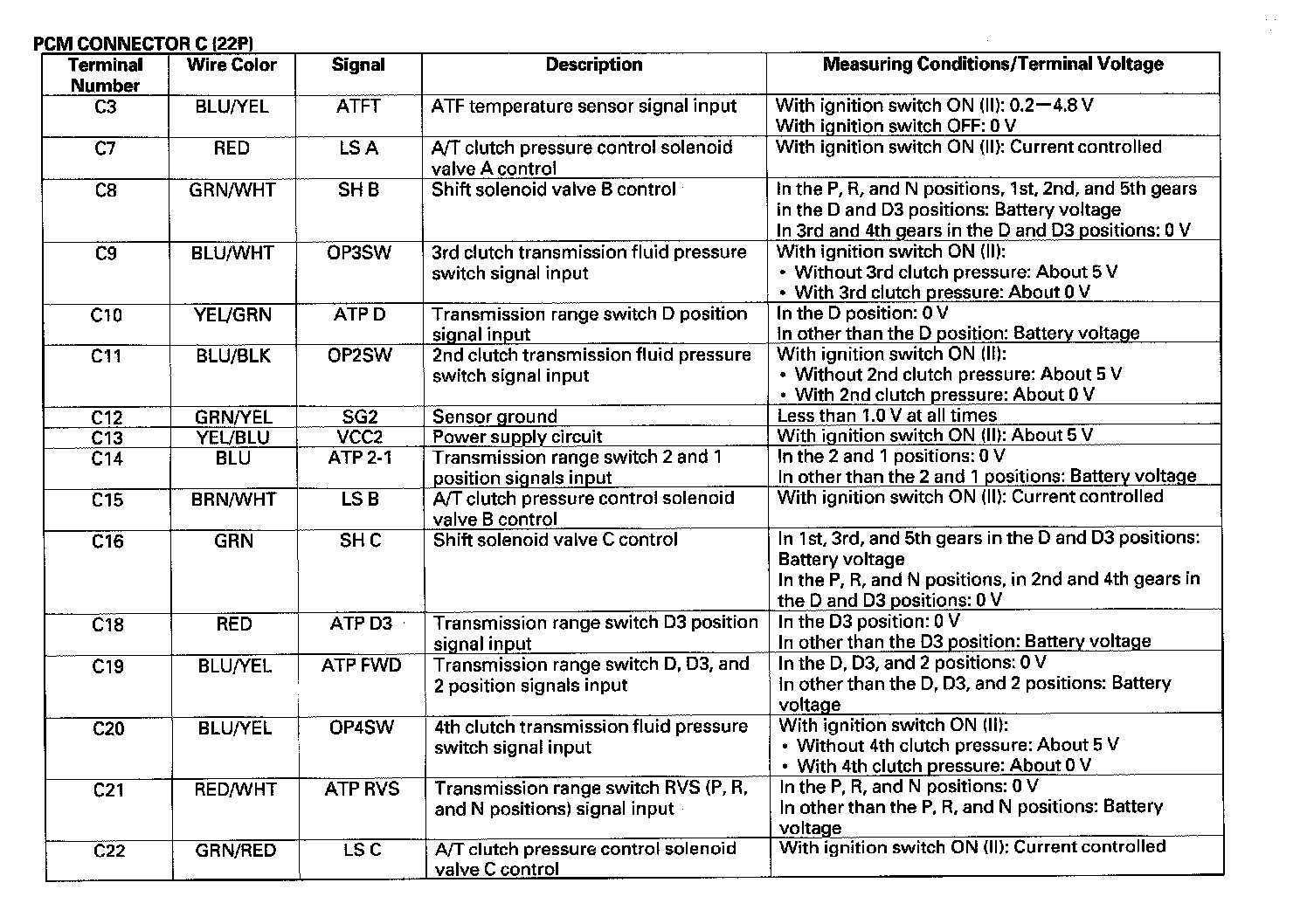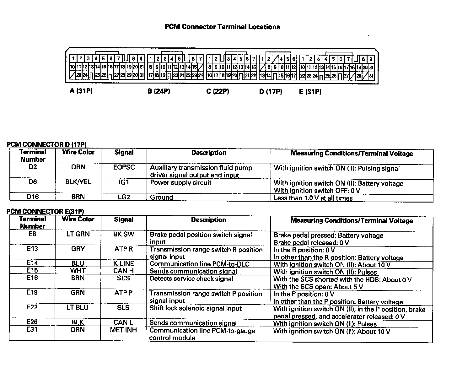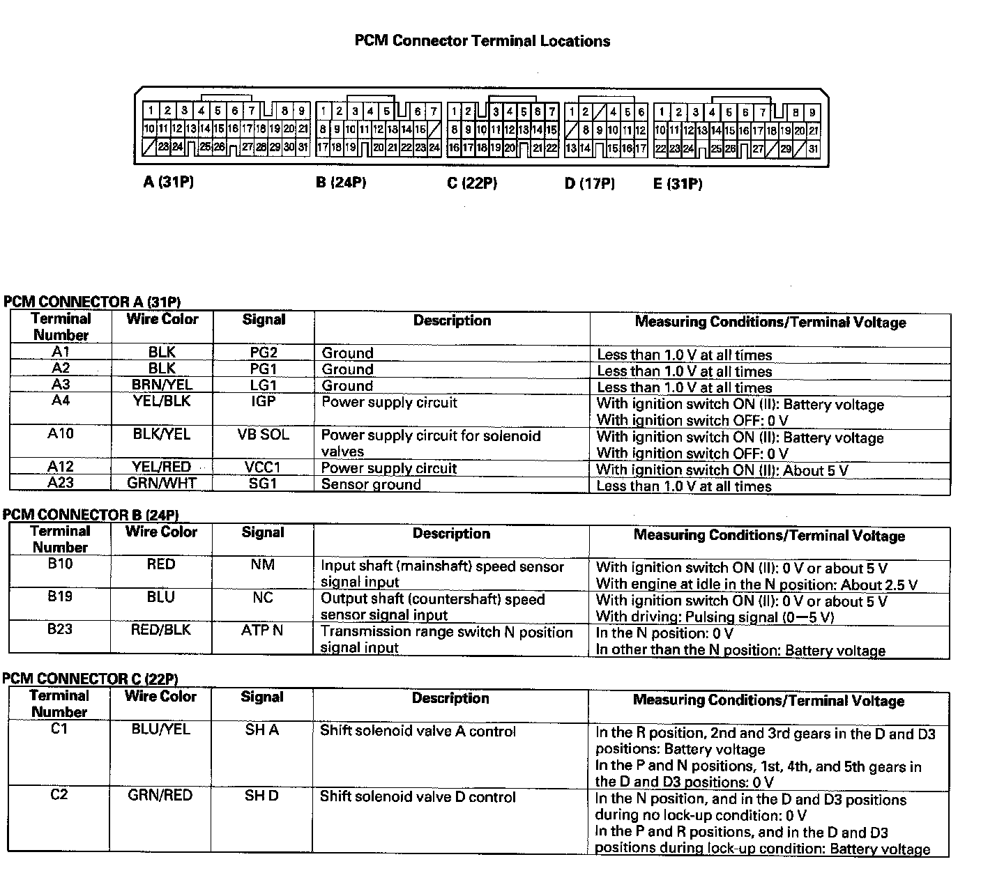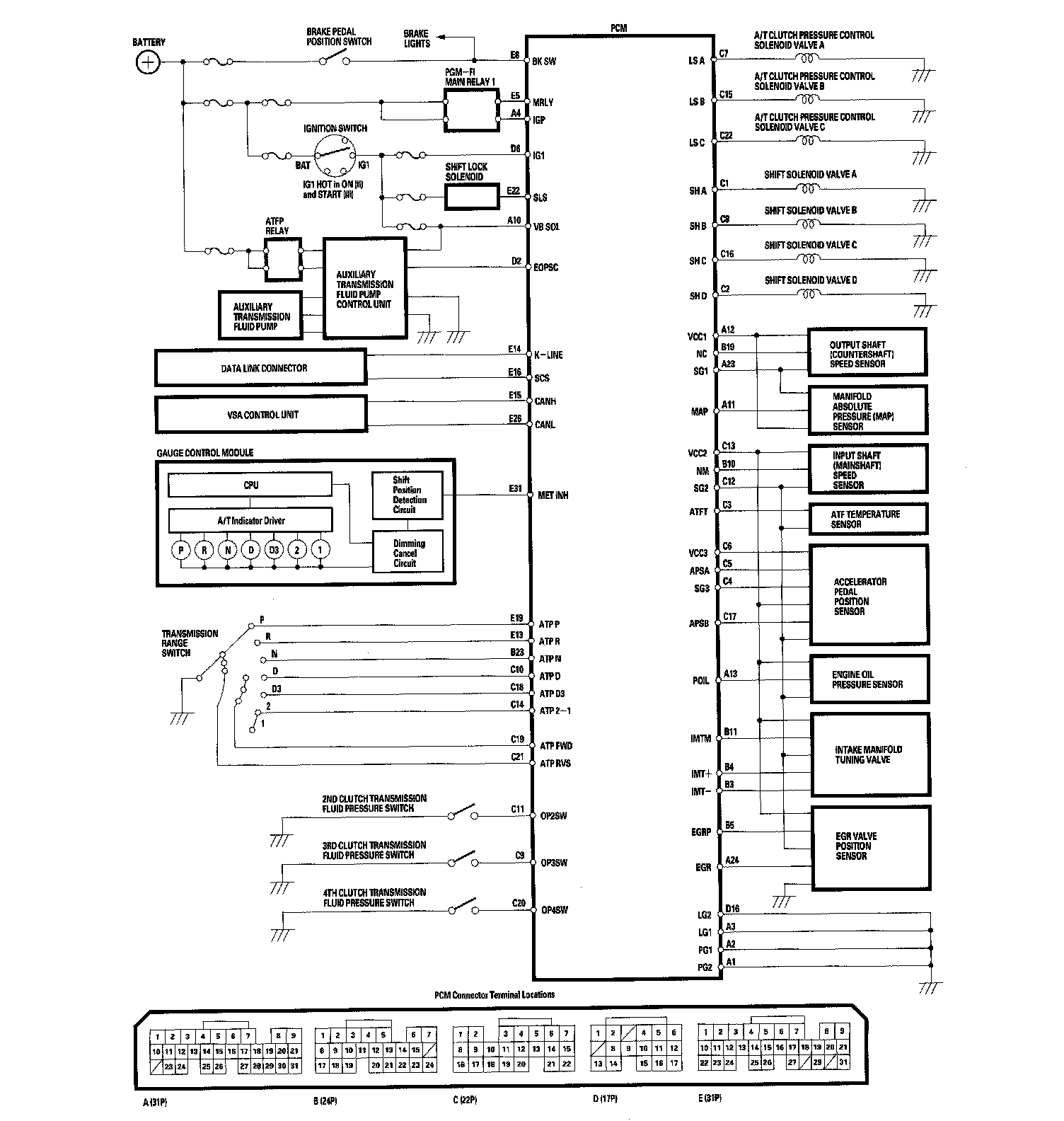 PCM A/T Control System Electrical Connections