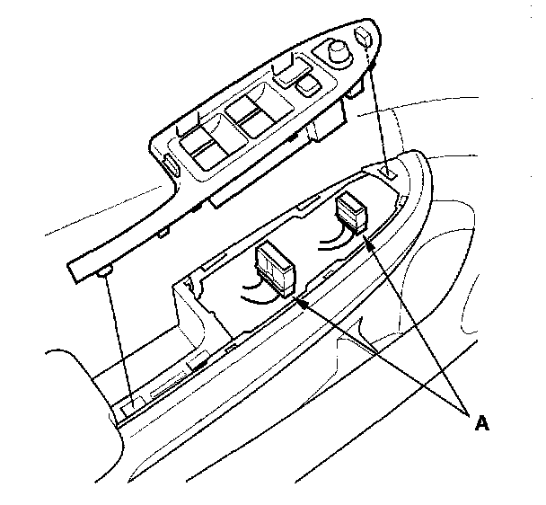 2. Disconnect the power mirror and power window switch connectors (A).
