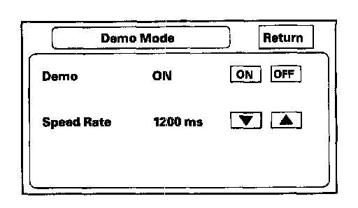 This screen is for factory use only, and should always be set to "OFF". Occasionally this setting is turned "ON" when vehicles are being used at Auto Shows or similar events. Turning this feature on, allows the navigation system to automatically follow a route to a destination when the vehicle is stationary.