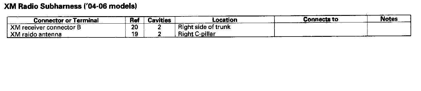 XM Radio Subharness ('04-06 Models):