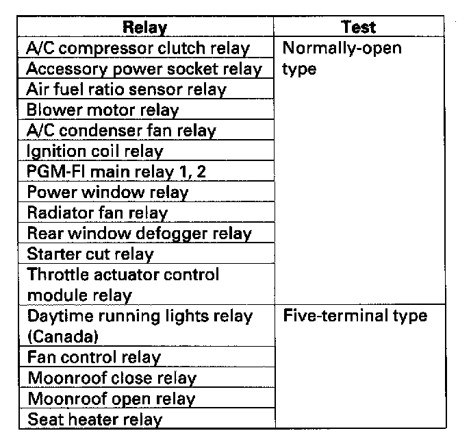 Main Relay (Computer/Fuel System): Testing and Inspection