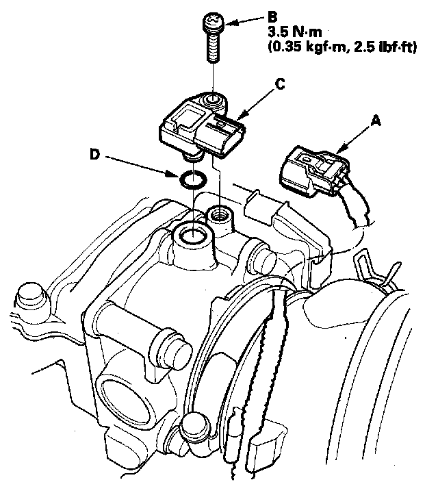 4. Install the sensor in the reverse order of removal with a new O-ring (D).