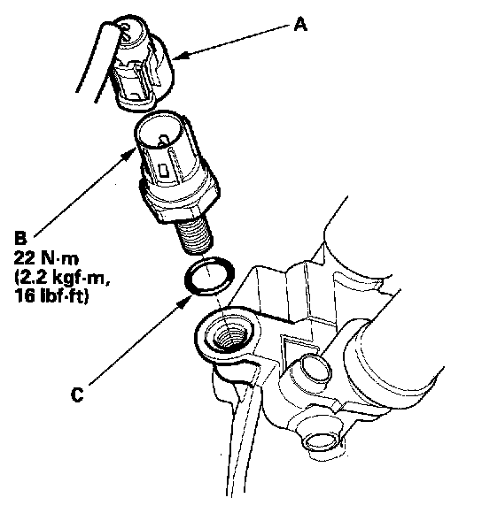 2. Install the switch in the reverse order of removal with a new O-ring (C).