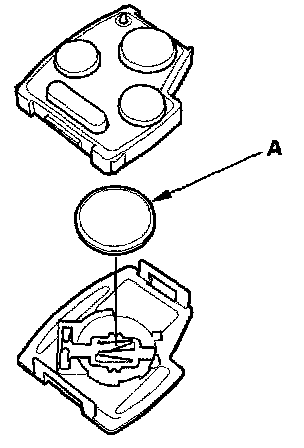 4. Replace the transmitter battery (A) with a new one, and try to lock and unlock the doors with the transmitter by pressing the lock or unlock button five or six times.