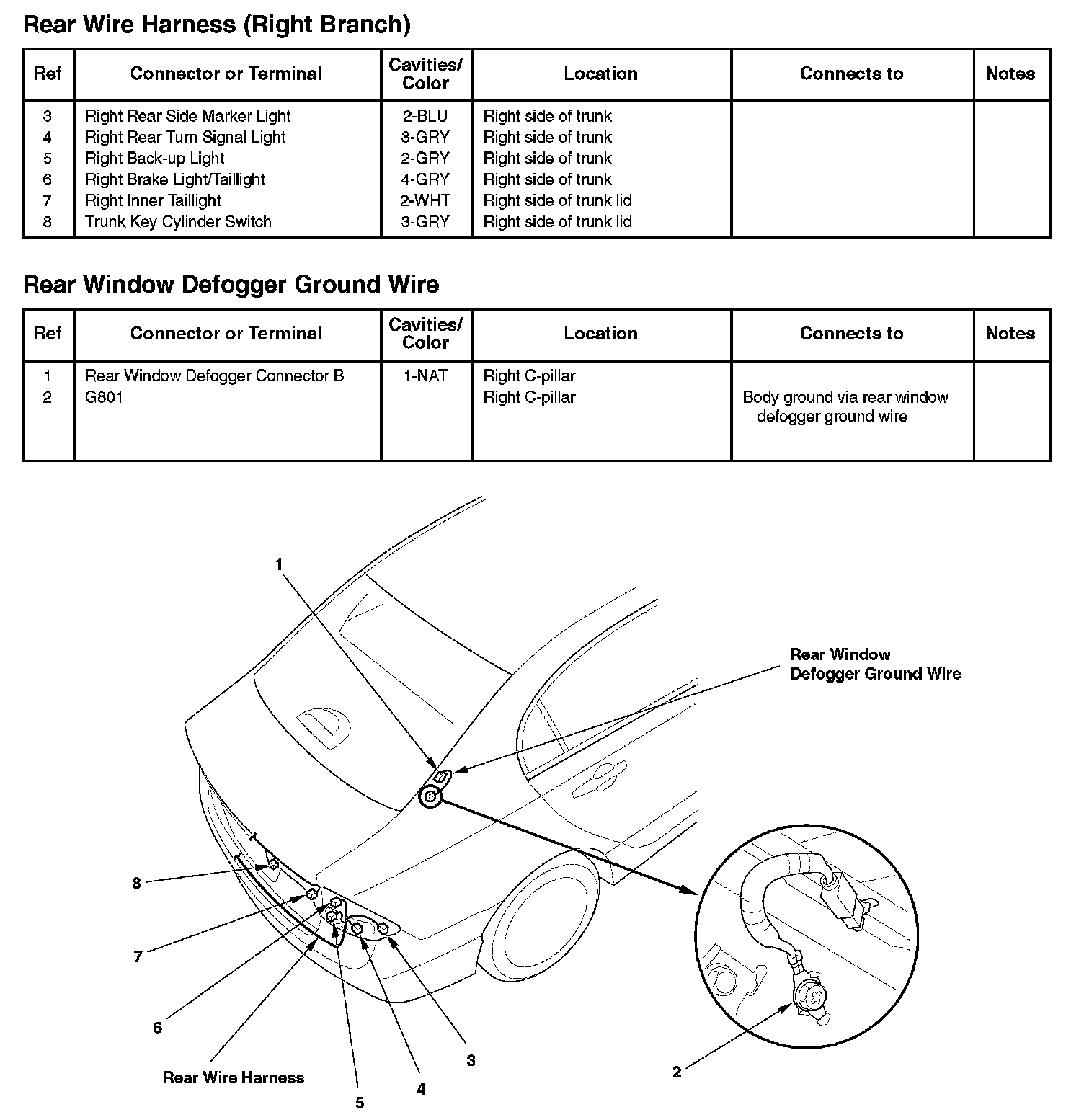 Rear Wire Harness (Right Branch)/Rear Window Defogger Ground Wire: