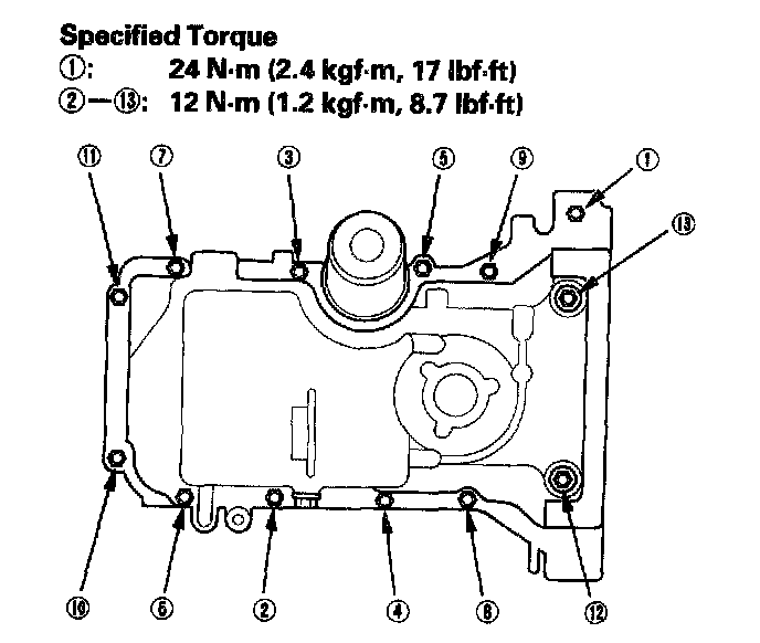 Tighten the bolts in two or three steps. Wipe off the excess liquid gasket on the each side of the crankshaft pulley and the drive plate.