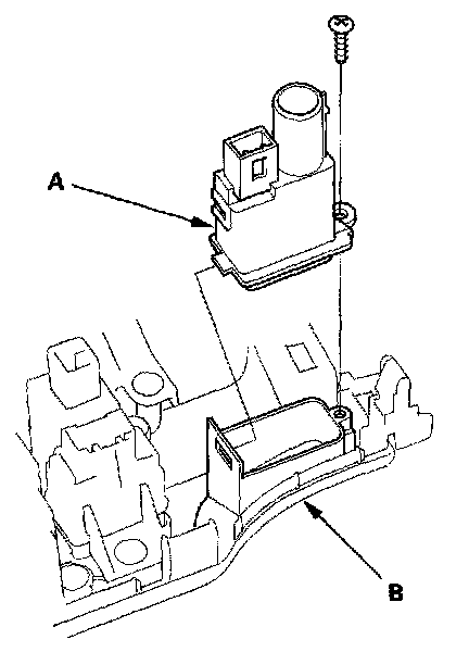 2. Remove the self-tapping screw and the humidity/in-car temperature sensor (A) from the center panel (B).