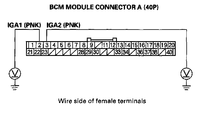 10. Measure voltage between body ground and BCM module connector terminal A29.