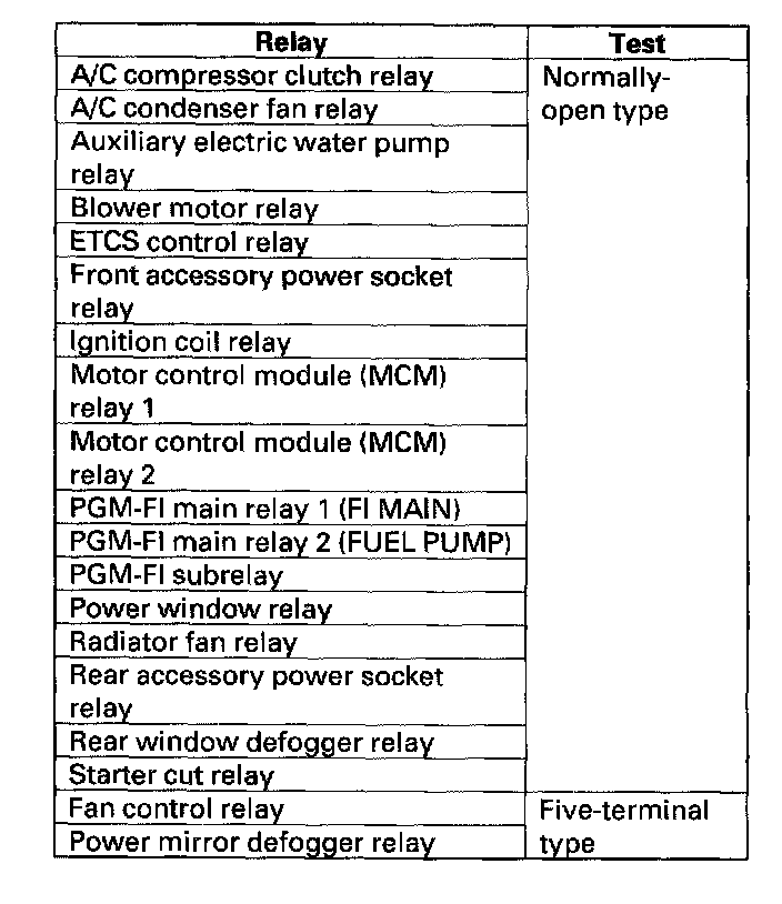 Main Relay (Computer/Fuel System): Testing and Inspection