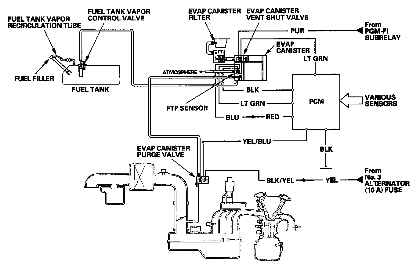 The EVAP controls minimize the amount of fuel vapor escaping to the atmosphere. Vapor from the fuel tank is temporarily stored in the EVAP canister until it can be purged from the canister into the engine and burned.