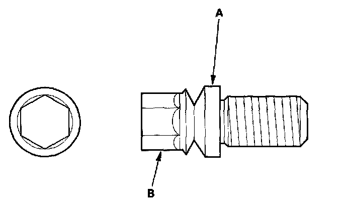 7. Tighten the shear bolts (A) until the hex heads (B) twist off.