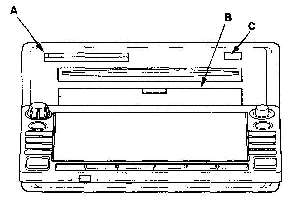 7. Push the CD "eject" button (C), and navigation DVD "eject" button and remove the discs (holding both by their edges to avoid fingerprints). To avoid scratches, place the navigation DVD, and customer's CD in a jewel case if available.