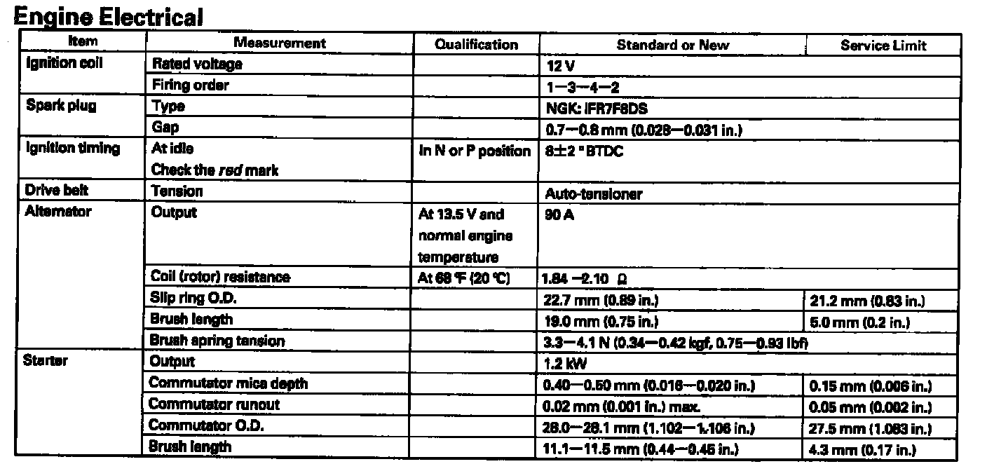 Ignition System: Specifications