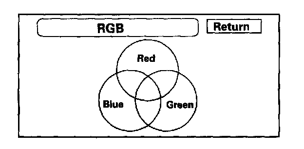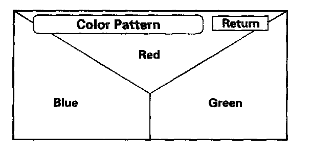 This screen verifies that the navigation display is receiving the video (R, G, B and Composite sync) signals properly. The three primary colors should all be shown without distortion. The combination of all three should produce a central white section. If any of the colors are missing, troubleshoot for the color signal. If the picture has lines in it, or scrolls horizontally or vertically, troubleshoot for a Composite sync problem.