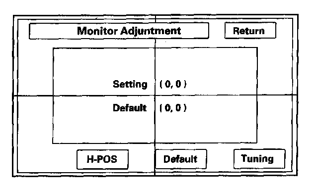 This allows the navigation display to be centered. Use the joystick to move the picture up/down or left/right. It is unlikely that you will ever need to adjust the monitor position. The "Default" button will reset the display position to factory specifications. The factory default is 0,0. The "H-POS" button is for factory use only.