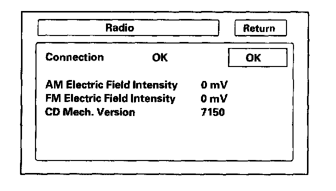 This diagnostic screen checks the internals of the radio (AM and FM) and CD player. If NG, replace the navigation unit.