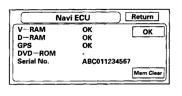 - If "V-RAM" or "D-RAM" is NG, then replace the navigation unit.
