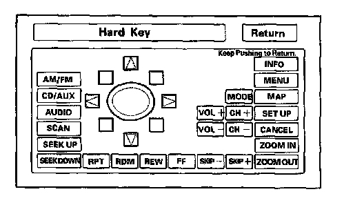 This diagnostic screen checks the status of each of the hard buttons surrounding the navigation display. When each hard button is pressed, the corresponding item on the screen should flash "blue". Touch the return key, or press and hold the joystick to exit.
