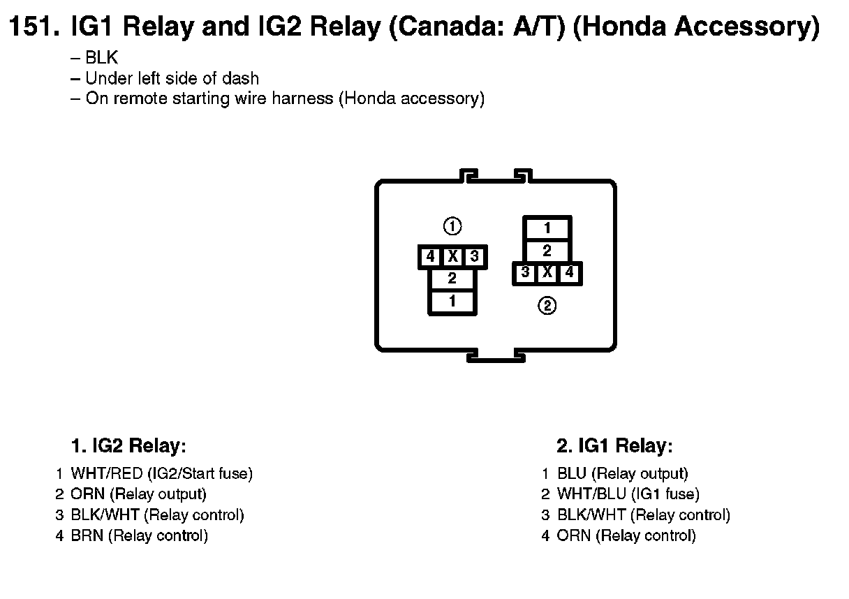 151. IG1 Relay IG2 Relay (Canada: A/T) (Honda Accessory):