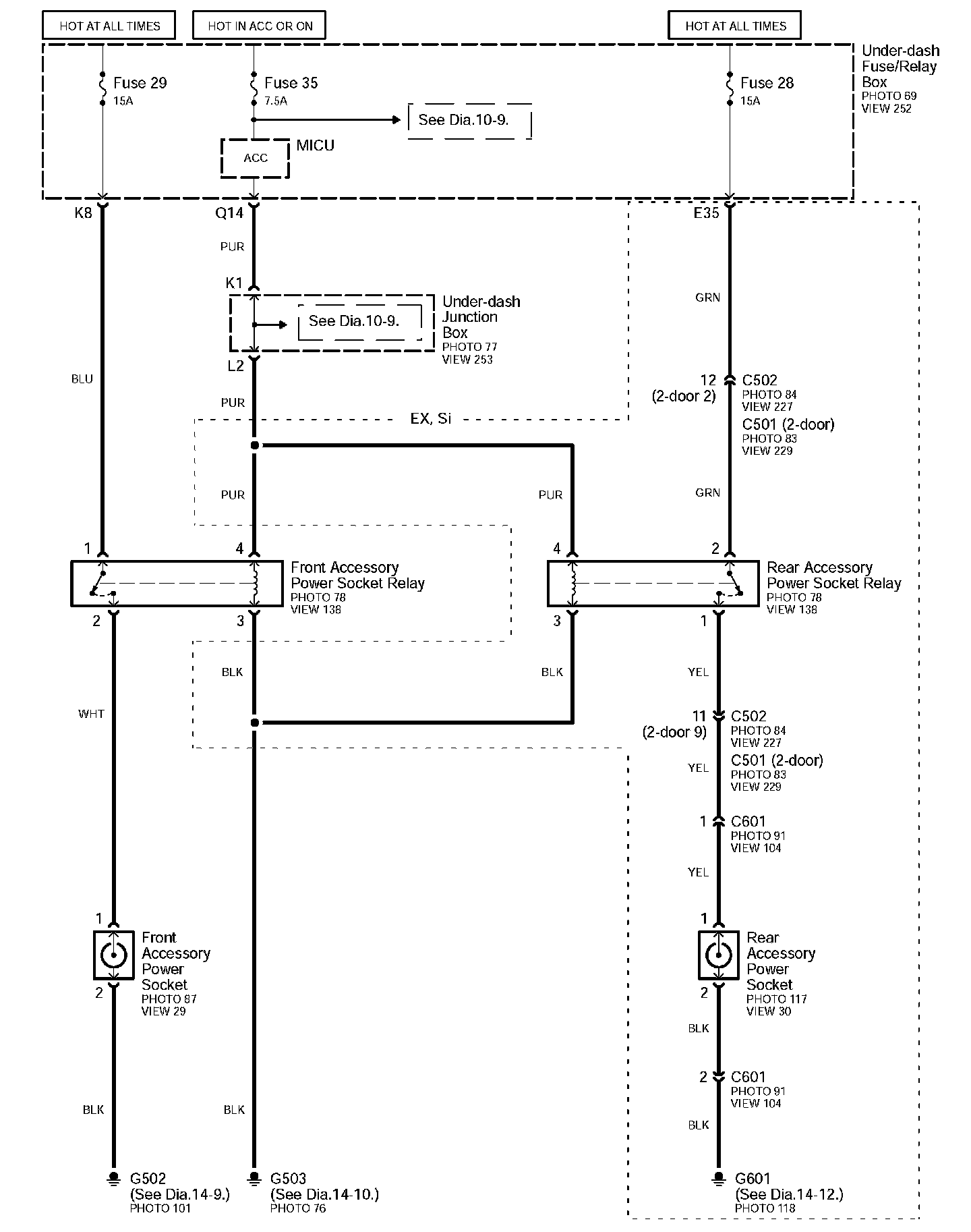 Connector Views: Connector terminal views (references to VIEWS) referred to within these diagrams can be found at Connector Views by View Number. Connector Views By View Number