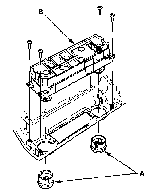 2. Remove the dials (A), the self-tapping screws, and the HVAC control unit (B).