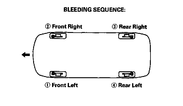 NOTE: Bleed the calipers or the wheel cylinders in the sequence shown.