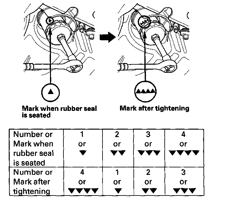 ^ Spin the filter on until its seal lightly seats against the oil pan, and note which number or mark is at the bottom.