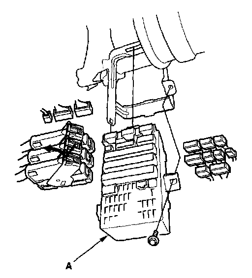 5. Disconnect the connectors from the fuse side of the under-dash fuse/relay box (A).
