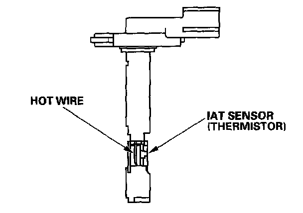The mass air flow (MAF) sensor/intake air temperature (IAT) sensor contains a hot wire and a thermistor. It is located in the intake air passage. The resistance of the hot wire and thermistor change due to intake air temperature and air flow. The control circuit in the MAF sensor controls the current to keep the hot wire at a set temperature. The current is converted to voltage in the control circuit, then output to the ECM/PCM.